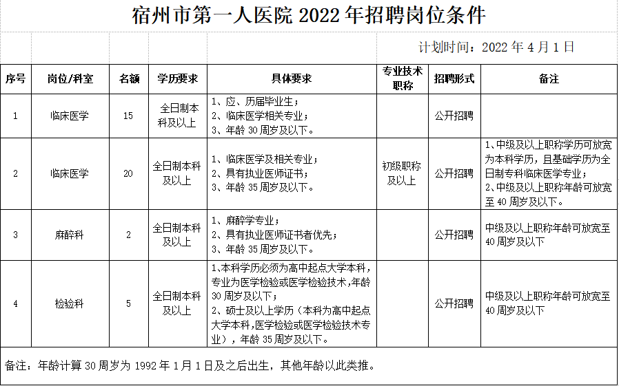 三、招聘岗位:具体详见《宿州市第一人医院2022年招聘岗位条件》